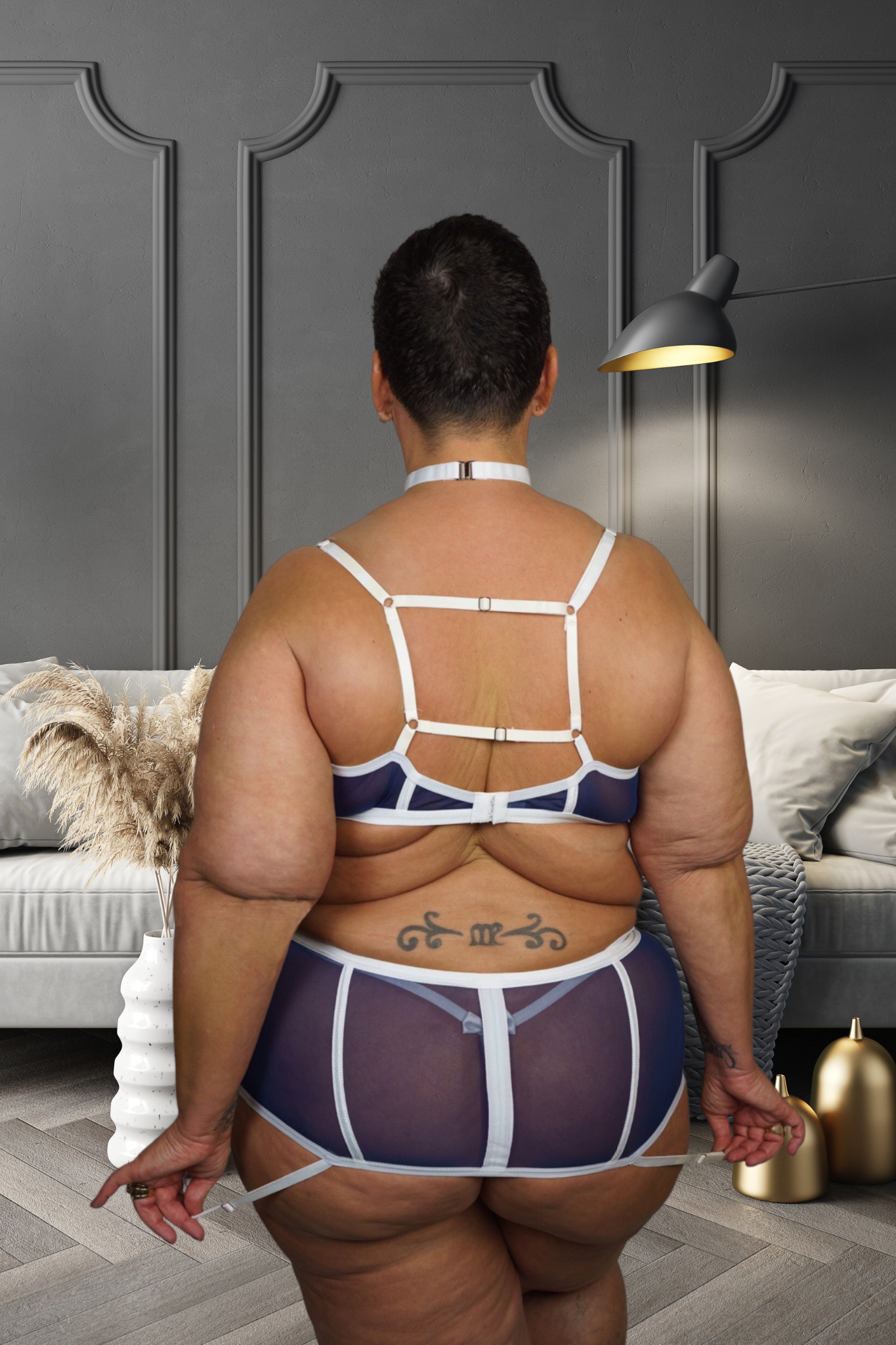 The Clearance offer is perfect for those seeking both affordability and style. The details do not fade with washing. The applique lingerie for curvy women keeps its shape for many wears. Mix and match this set with other CT Lingerie pieces. The blue and white contrast adds elegance to your lingerie drawer.
