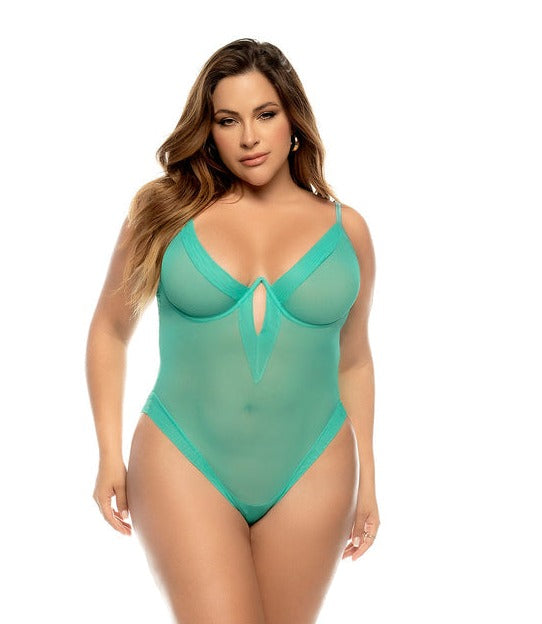CT Lingerie Sheer Plunge plus size teal bodysuit lingerie